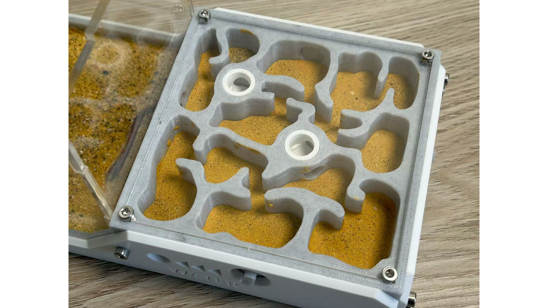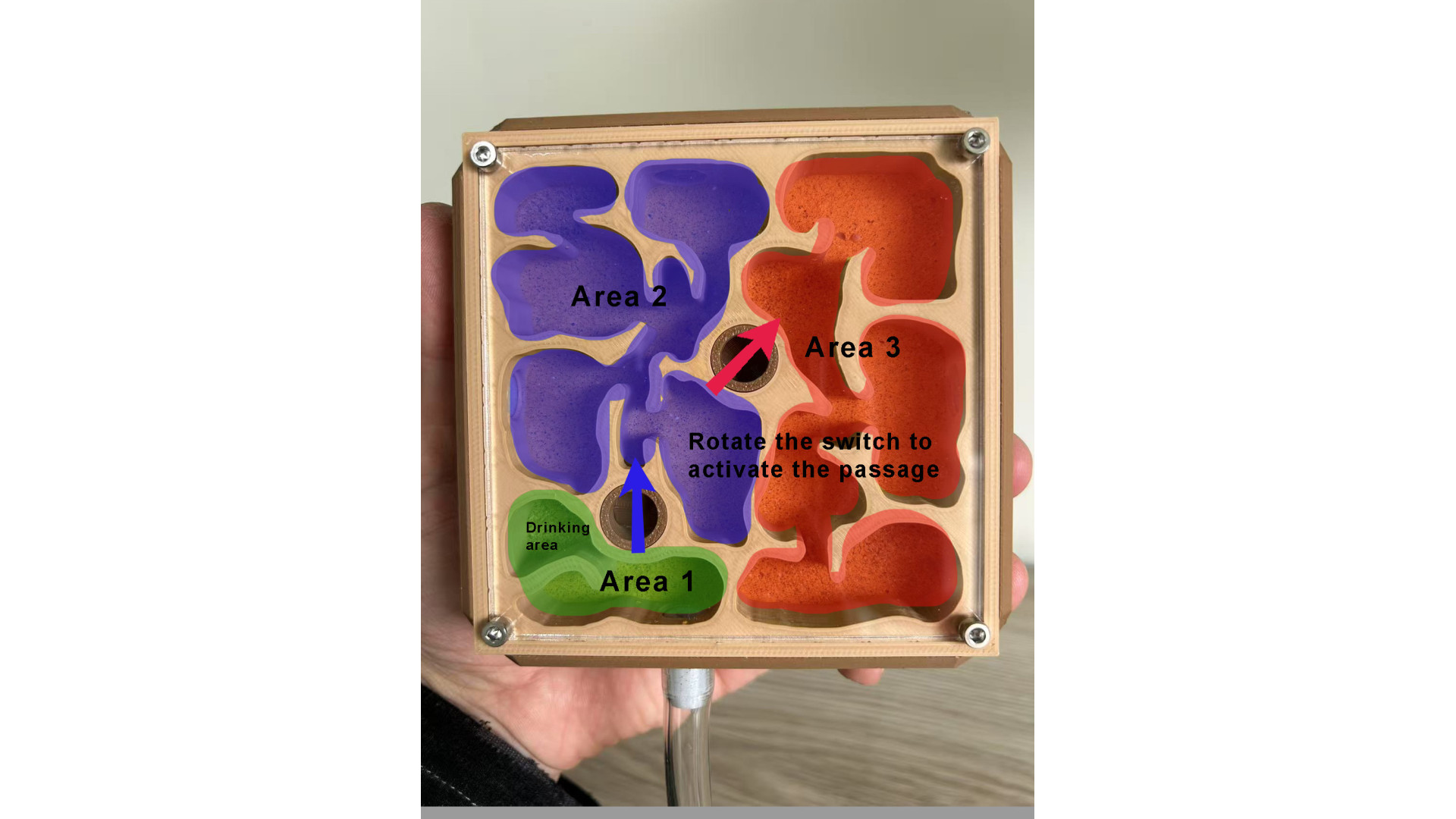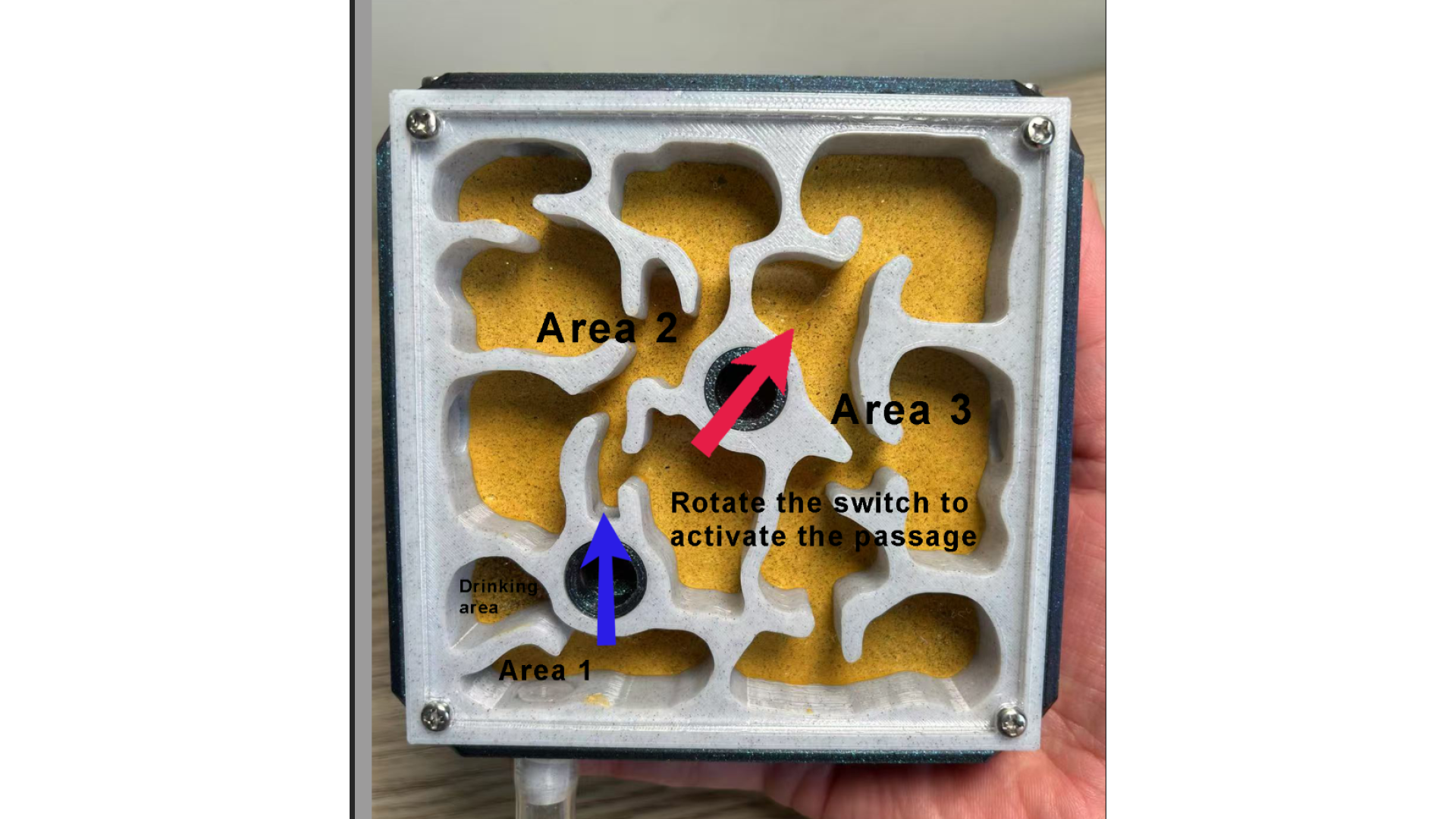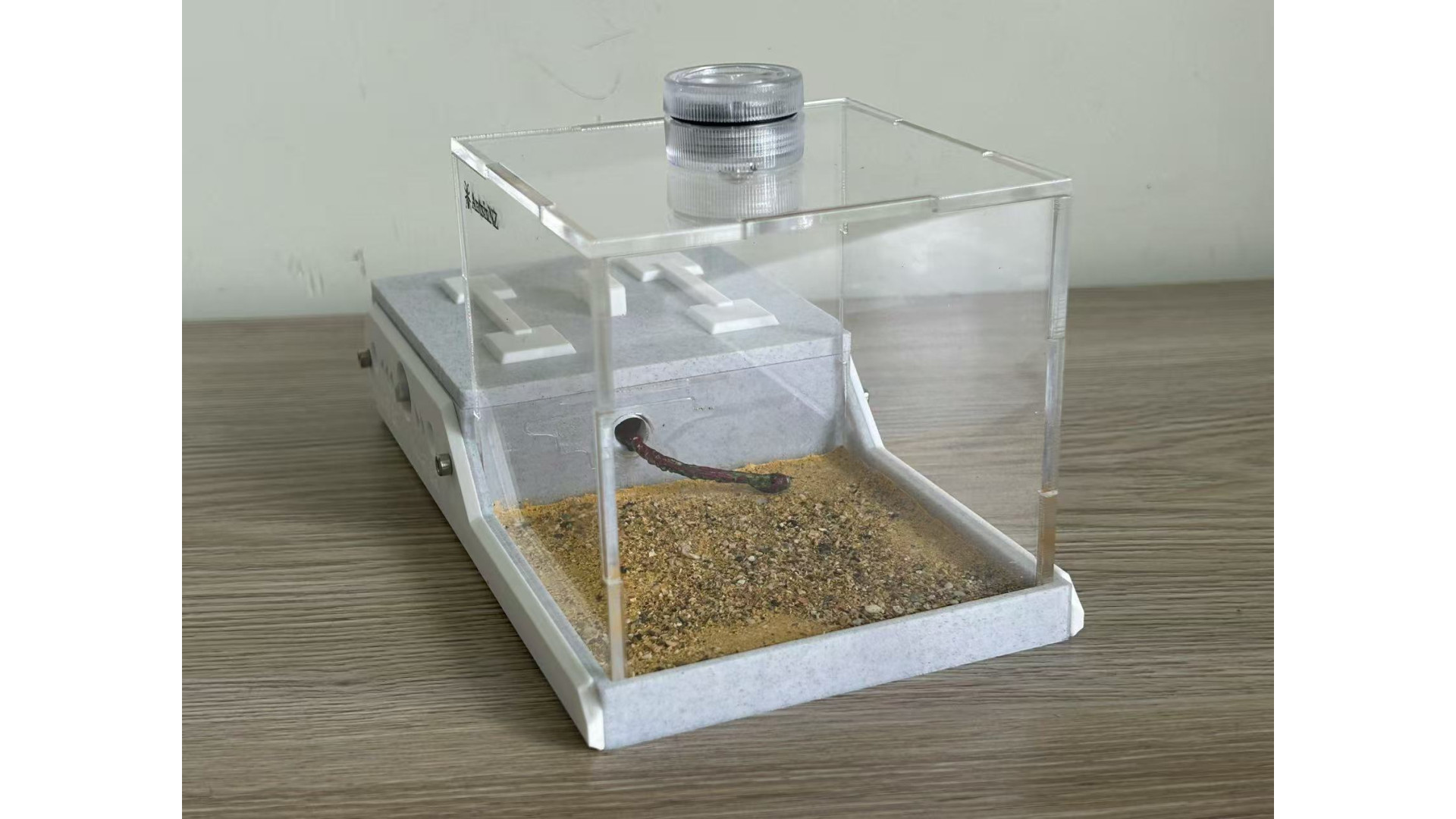 The list includes: one W3 Marble-Like farm: (210x106x106mm), This is 3D print Marble-Like PLA, not real marble. include light, decorate (5 mushroom, 1 tree root), syringe. This ant nest is designed to grow with your colony. Simply turn the central white knob to open the passage, to provide more space as the ants colony getting bigger. suggest, area 1 for colony up to 50, open area 2 can hold up to 400, open area 3 can hold up to 1000. ant need farm to fit colony size, that will let queen fell safe and lay eggs. on each side of farm have hole can screw a tube connect part in. then you can use it to connect more area you like. It has 3 water-filling holes, 1 for each area. corresponding to a different zone.(show in photo) most time you only need add water to the drinking area. some ant need more humidity, then need add water to other area. make sure ant need some dry area as well. come with a no sharp syringes as well. ants in photo is not included